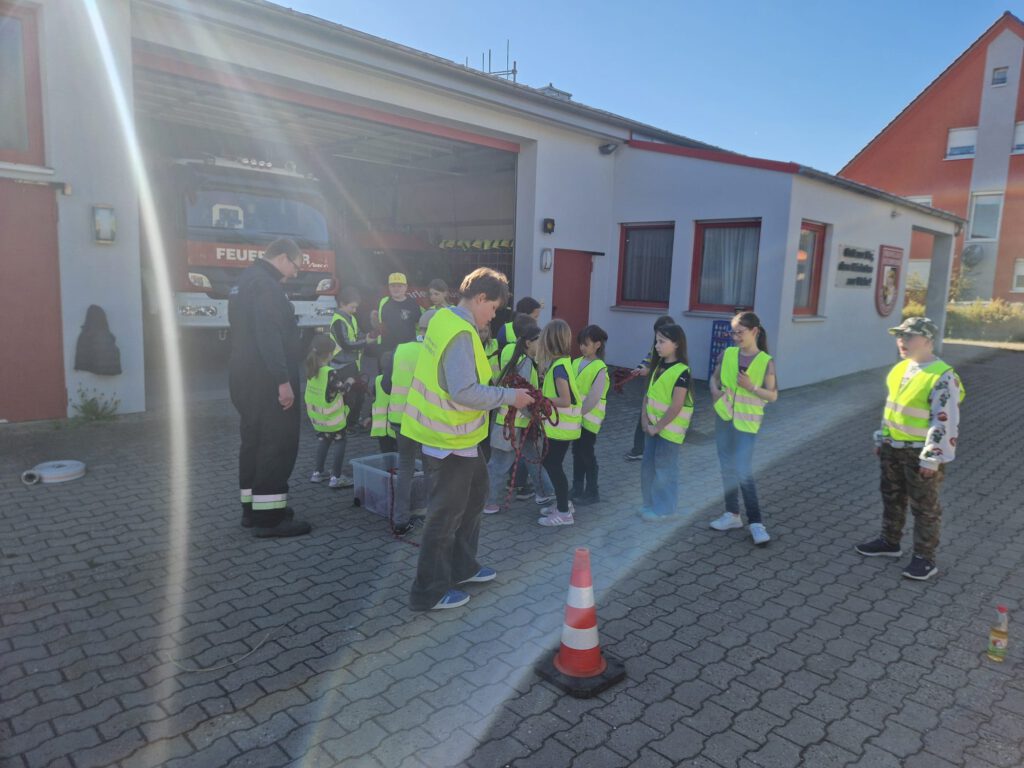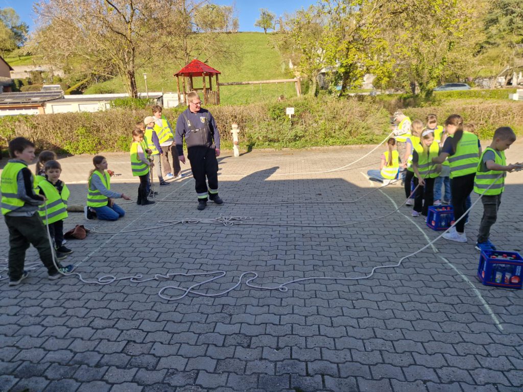Spielerisch und mit viel Begeisterung lernten die Kinder die wichtigsten Feuerwehrknoten kennen. Dazu gehörten unter anderem der Mastwurf, der Kreuzknoten und der Rettungsknoten. Schritt für Schritt wurden die Techniken erklärt und anschließend von den Kindern selbst ausprobiert.