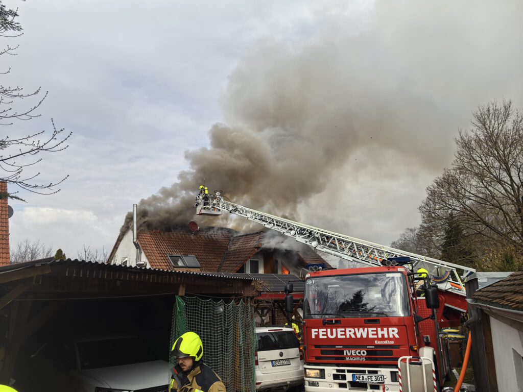 Durch die Leitstelle Ansbach wurden wir gegen 14:00 Uhr nach Emskirchen zum gemeldeten Dachstuhlbrand alarmiert. Bereits auf der Anfahrt konnte durch die ersteintreffende Feuerwehr Emskirchen die Lagemeldung abgegeben werden, der gemeldete Dachstuhlbrand bestätigt werden und entsprechend auf Wohnhausbrand angepasst werden.