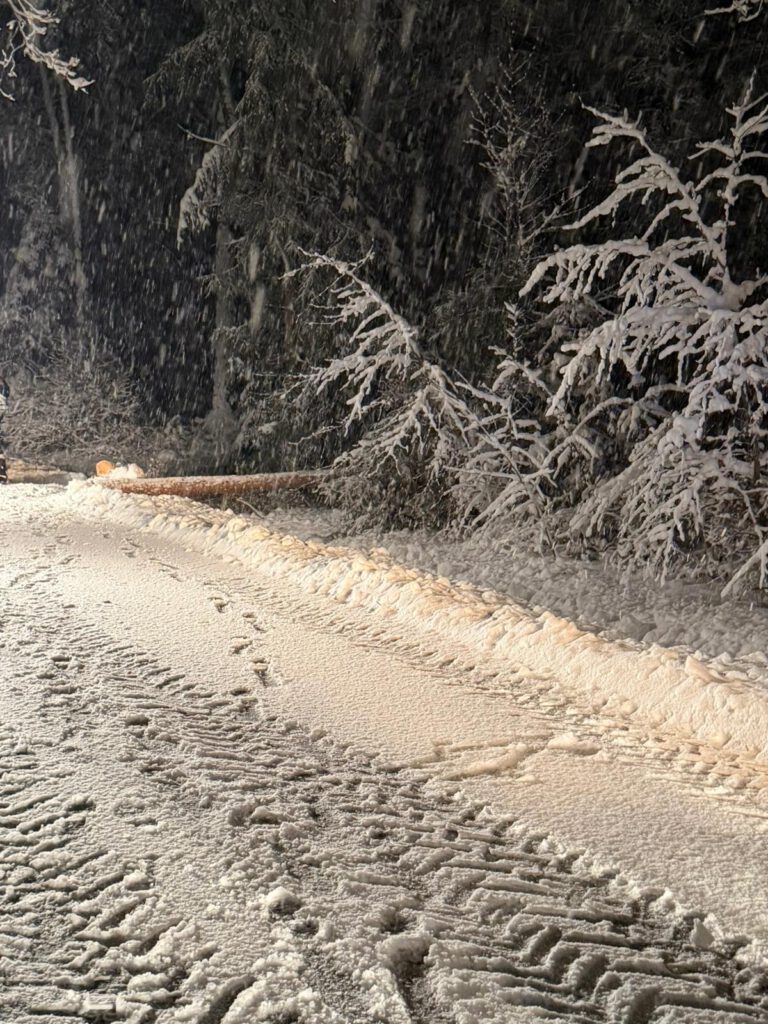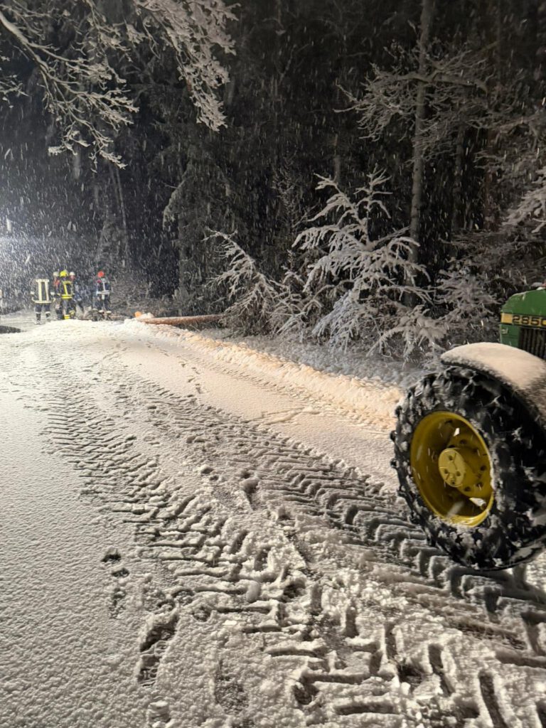 In Folge des ersten Einsatzes in Eckenberg konnte im betroffenen Bereich gleich noch ein weiterer Baum entdeckt werden und wurde ebenfalls entfernt. Dieser ist durch die Schneelast zusammengebrochen und auf die Strasse gefallen. Durch die Feuerwehr wurde der Baum zerkleinert und an die Seite gelegt. Dort kann er dann vom Eigentümer weiter verarbeitet werden.